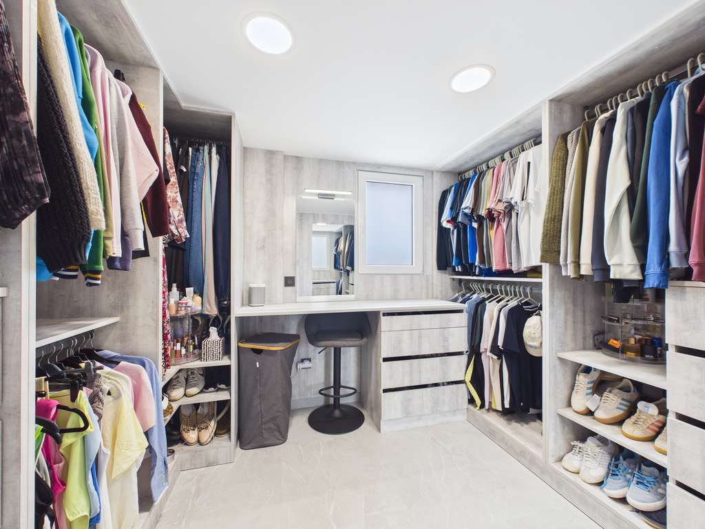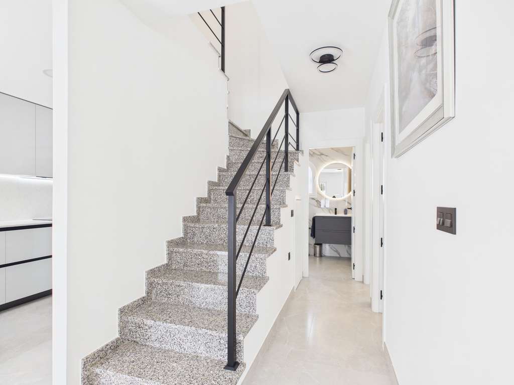 Una escalera interior conduce a la primera planta, donde encontrará un amplio vestidor, cuidadosamente diseñado por los actuales propietarios. Este nivel también cuenta con el segundo cuarto de baño moderno, de nuevo con una cabina de ducha, y el dormitorio principal, que se beneficia de aire acondicionado y acceso directo a una terraza privada en la azotea con preciosas vistas abiertas sobre el campo circundante.