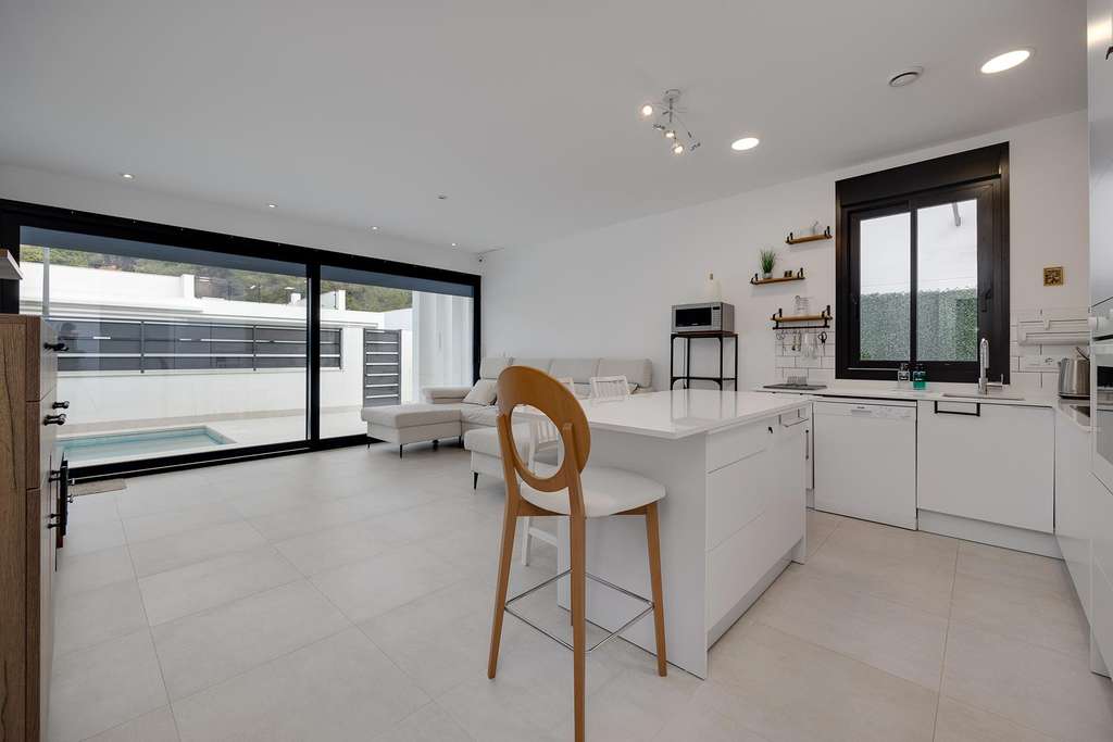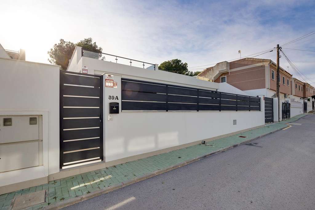 Construida en una sola planta sobre una parcela de 300 m², la vivienda ofrece una distribución cómoda y funcional con 3 dormitorios y 2 baños, pensada para disfrutarla durante todo el año. El exterior destaca por su piscina privada, una zona de aparcamiento cubierto dentro de la parcela y un espectacular solárium privado en la azotea, perfecto para relajarse al sol, crear una zona chill out o disfrutar de agradables veladas al aire libre.
