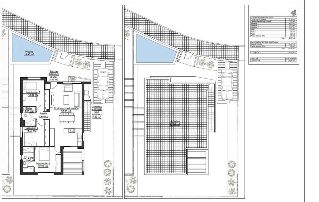 Pequeña promoción de sólo 5 chalets, construidos en una sola planta con una distribución de 3 dormitorios y 2 baños, zona de salón comedor cocina abierta, totalmente equipada, con isla central y vistas a la piscina privada, en parcelas independientes desde