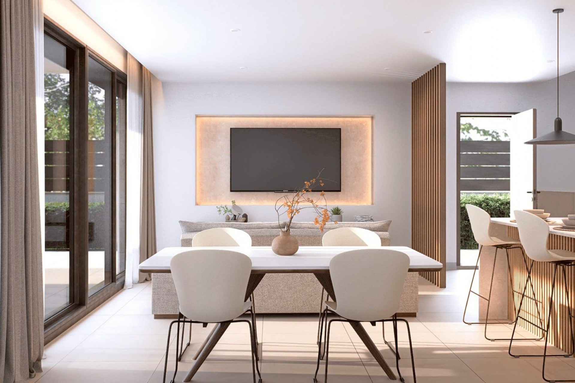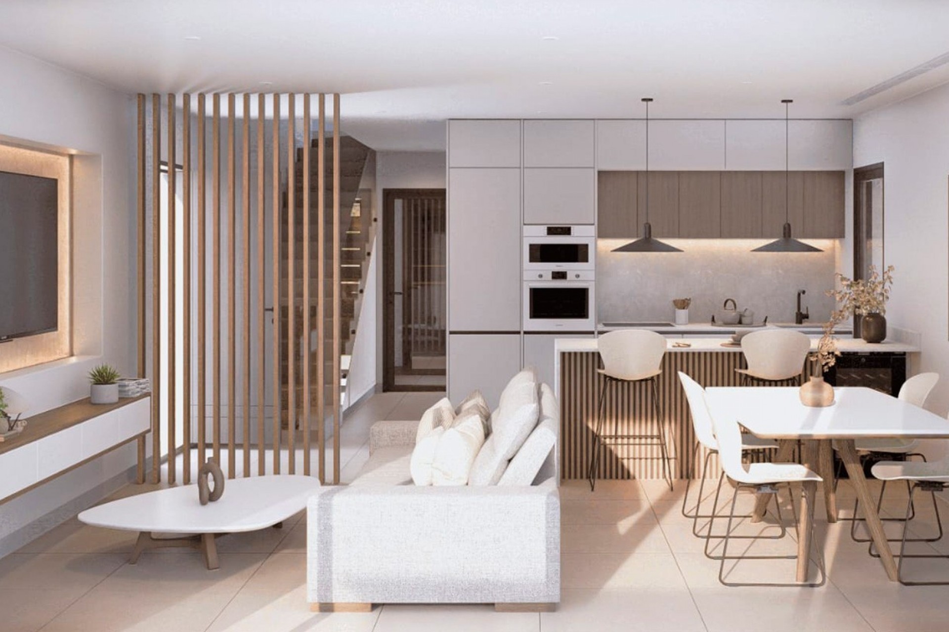 El proyecto está compuesto por tan solo cuatro villas independientes, lo que garantiza privacidad y exclusividad. Cada vivienda se distribuye en dos plantas y ofrece 3 dormitorios y 3 baños, además de un luminoso salón con cocina de concepto abierto, diseñado para maximizar el espacio y la entrada de luz natural, creando un ambiente moderno y acogedor tanto para el día a día como para reuniones sociales.