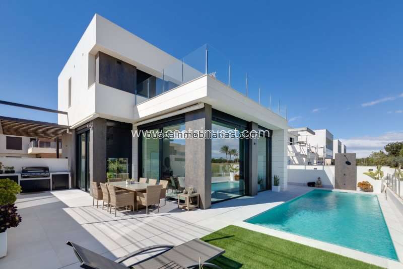 Se vende villa en Pilar de la Horadada. Superficie 122 m2. Precio 535.000 €. Dispone de 3 habitaciones, 2 baños y piscina.