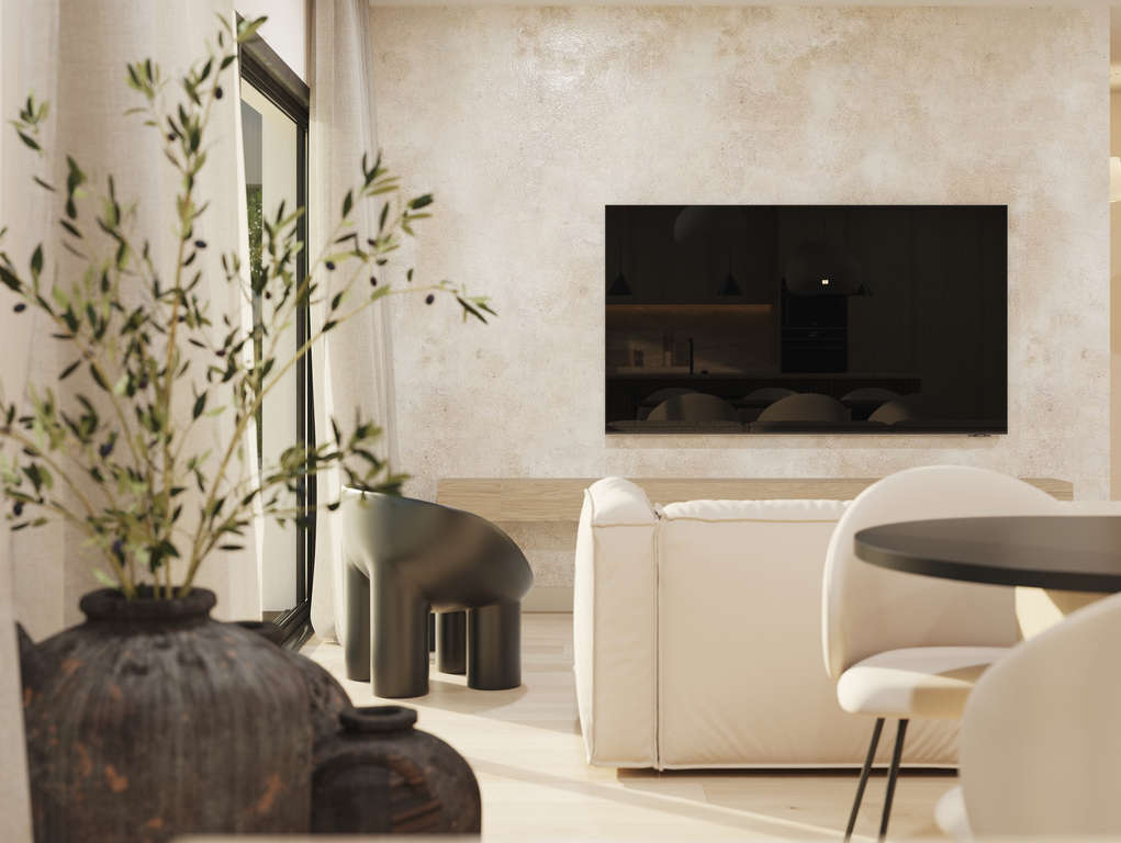 INTERIORES El interior de la Villa de Obra Nueva en Alberca, Polop, está diseñado para ofrecer un espacio habitable cómodo y moderno. Con una superficie construida de 172 m² y 153 m² útiles, la villa dispone de 3 dormitorios dobles y 3 baños completos, todos ellos equipados con materiales de alta calidad. La cocina americana está completamente equipada con electrodomésticos de última generación y se abre hacia un salón amplio y luminoso, creando un espacio perfecto para la vida diaria y el entretenimiento. Los suelos y alicatados de primera calidad realzan la sensación de lujo y confort en toda la vivienda. La preinstalación de aire acondicionado asegura un ambiente agradable en todas las estaciones. Grandes ventanales permiten la entrada de luz natural, conectando los interiores con el entorno exterior. Además, existe la posibilidad de añadir un sótano con un coste adicional, ofreciendo espacio extra para almacenamiento o actividades adicionales.