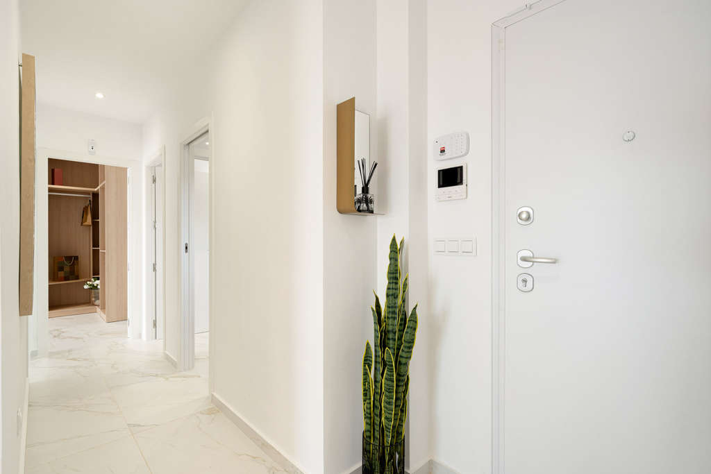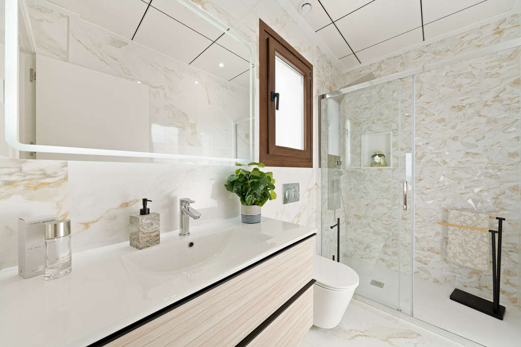 Amplios espacios abiertos con una distribución fluida entre el salón, comedor y cocina. Cocina moderna con acabados de alta calidad y acceso directo a la zona exterior. 3 dormitorios en suite, todos con baños privados y grandes ventanales que permiten la entrada de luz natural. Baños de diseño, equipados con calefacción por suelo radiante para mayor confort. Persianas motorizadas en salón, cocina y dormitorios para mayor comodidad y seguridad. Preinstalación de climatización frío/calor por conductos, asegurando eficiencia energética y confort térmico en cualquier estación del año. Agua caliente sanitaria por aerotermia, reduciendo el consumo energético y optimizando el uso de recursos sostenibles.