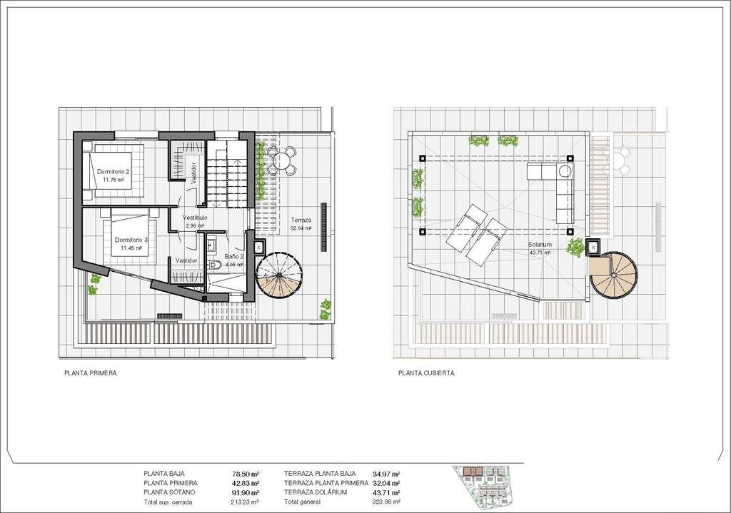 Viviendas modernas con 3 amplios dormitorios con armarios empotrados (el principal en planta baja, con baño y vestidor en suite), 2 amplios baños, gran salón-comedor con cocina abierta, amplias terrazas, gran semisótano con ventanas.