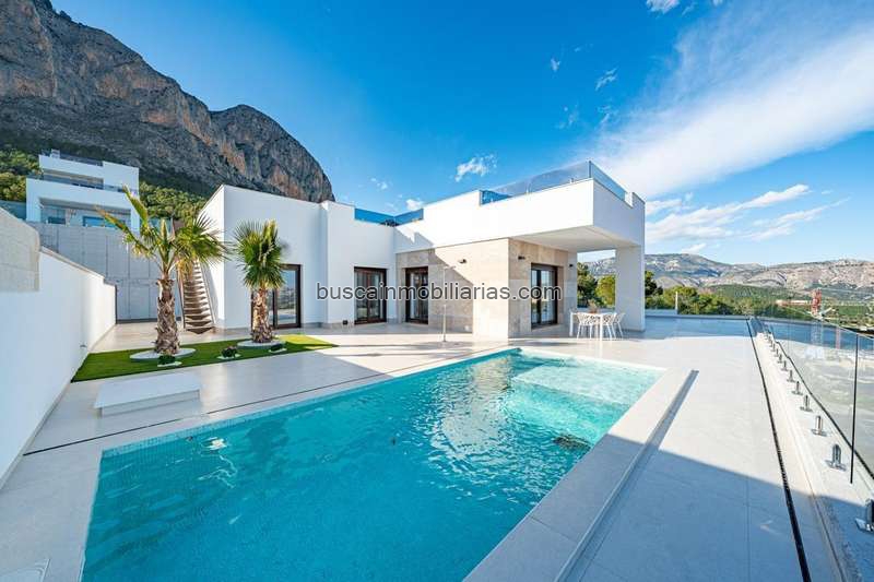 Impresionante villa de obra nueva en Polop con vistas al mar, amplia parcela y piscina privada