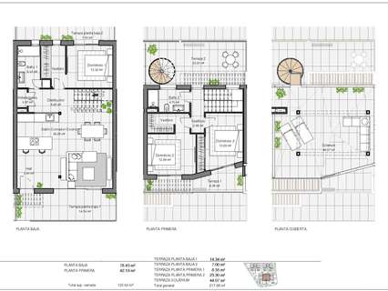 Viviendas modernas con 3 amplios dormitorios con armarios empotrados (el principal en planta baja, con baño y vestidor en suite), 2 amplios baños, gran salón-comedor con cocina abierta, amplias terrazas.