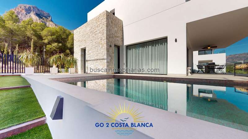 Villa de lujo en Polop zona Balcon de Ponoig , 294 m. de superficie, 413 m. superficie parcela, 3 habitaciones dobles, 3 baños, propiedad en Obra Nueva, orientación sureste.