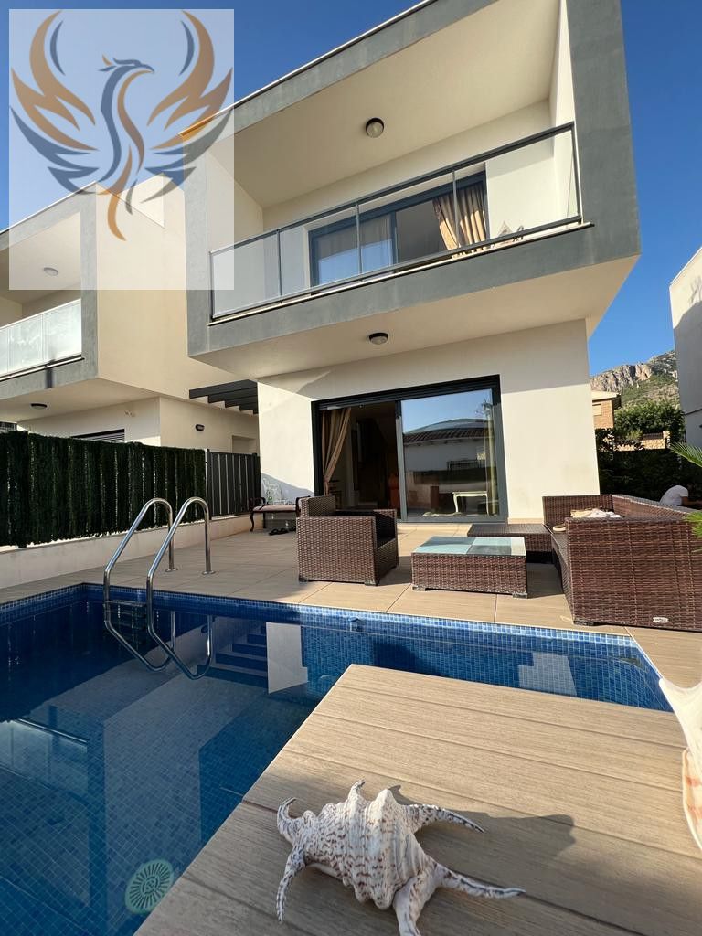 Villa de estilo moderno con una superficie de 158m2, con piscina privada, 3 habitaciones con armarios empotrados, 3 baños (suelo radiante), cocina equipada, salón comedor con grandes ventanales , solarium . La vivienda dispone de aire acondicionado (frío y calor), estufa de pellets, parking exterior .