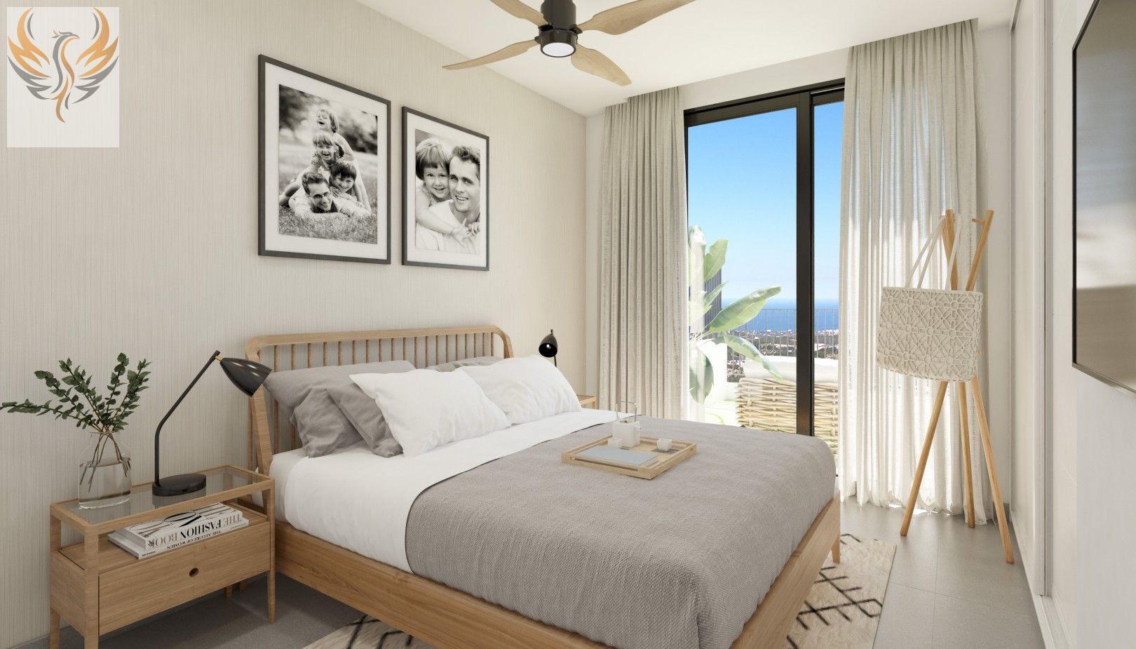 La instalación de aire acondicionado se realizará mediante bomba de calor por conductos en falso techo con rejillas en salón y dormitorios. Se dispondrá de termostato en salón. Sistema de aporte de agua caliente sanitaria mediante aerotermia.