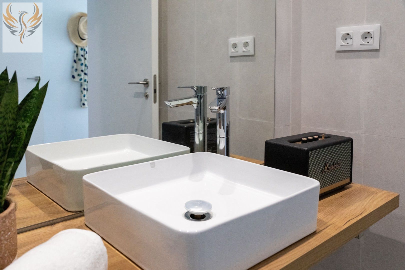La instalación de aire acondicionado se realizará mediante bomba de calor por conductos en falso techo con rejillas en salón y dormitorios. Se dispondrá de termostato en salón. Sistema de aporte de agua caliente sanitaria mediante aerotermia.