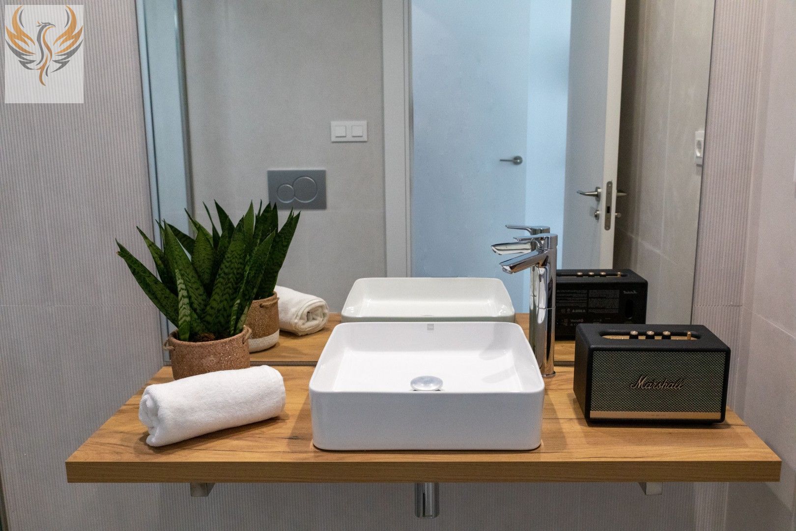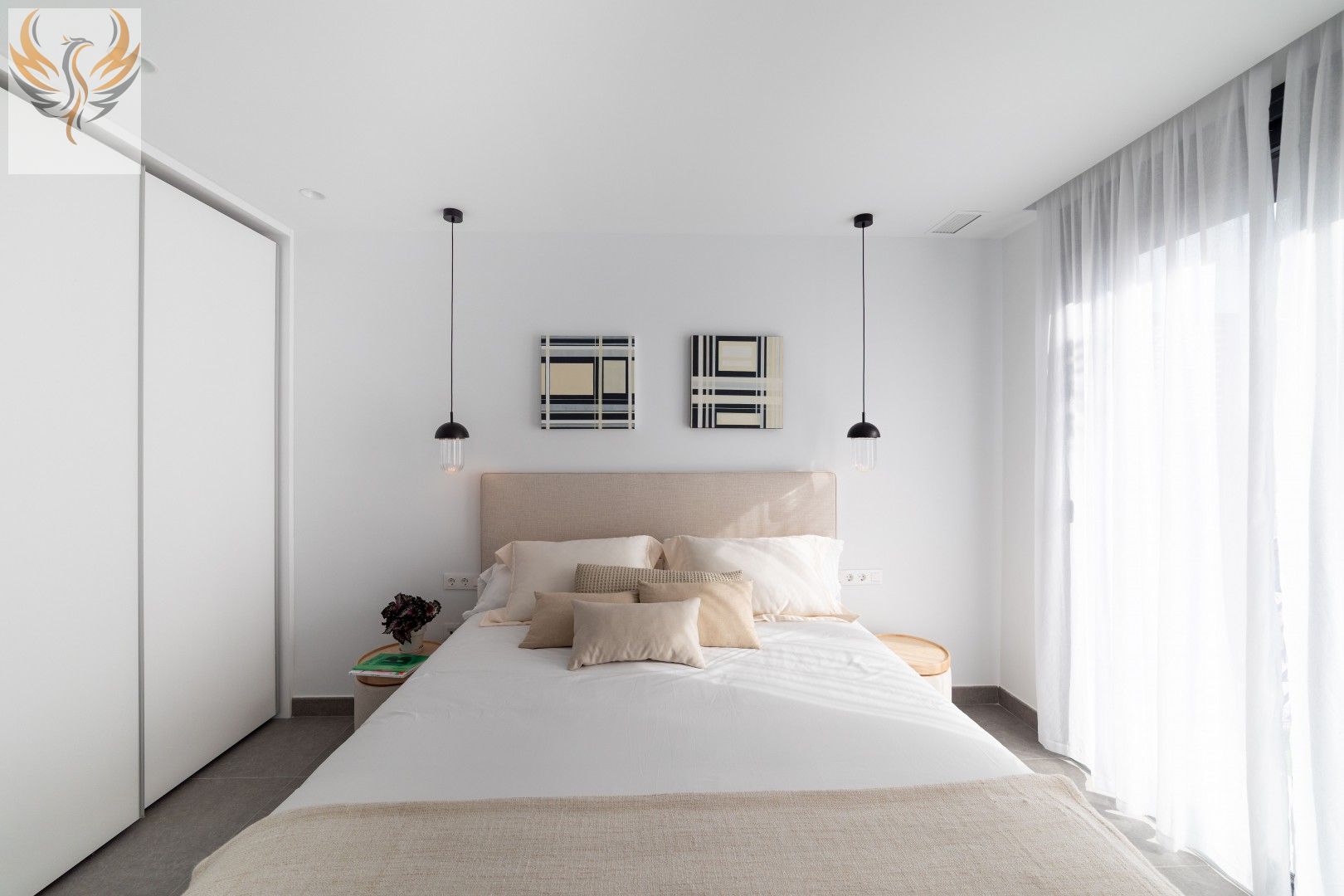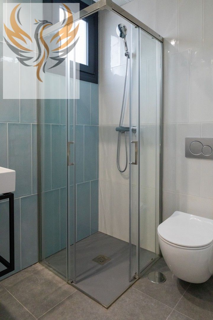 Solado de gres porcelánico en toda la vivienda y exteriores. Alicatados en baños y aseos, con azulejo cerámico colocada con cemento cola adhesivo hidrófugo. Falso techo en toda la vivienda continuo con placas lisas de escayola, siendo desmontable en baño 2. Paramentos verticales y horizontales de vivienda en pintura plástica lisa color claro.