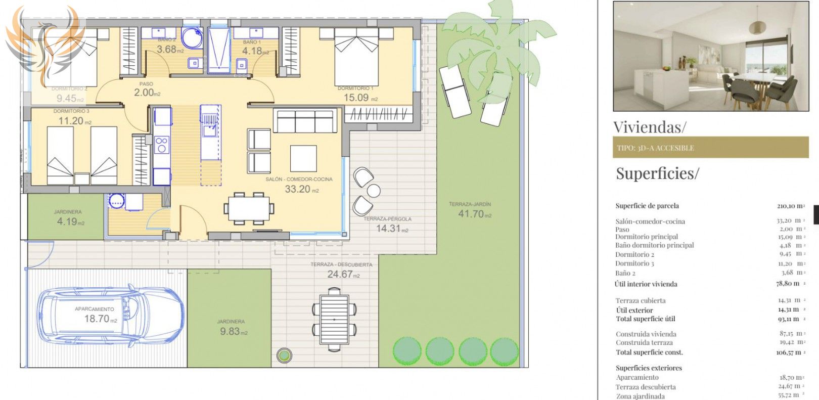 Chalet Tipo I3. con 3 Dormitorios. Superficie Util 93,11 m2. Sup. Construida 106,57 m2. Parcela 210,00 m2. Precio: 330.000 €