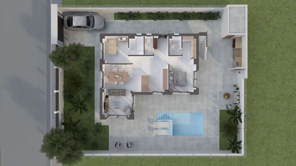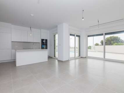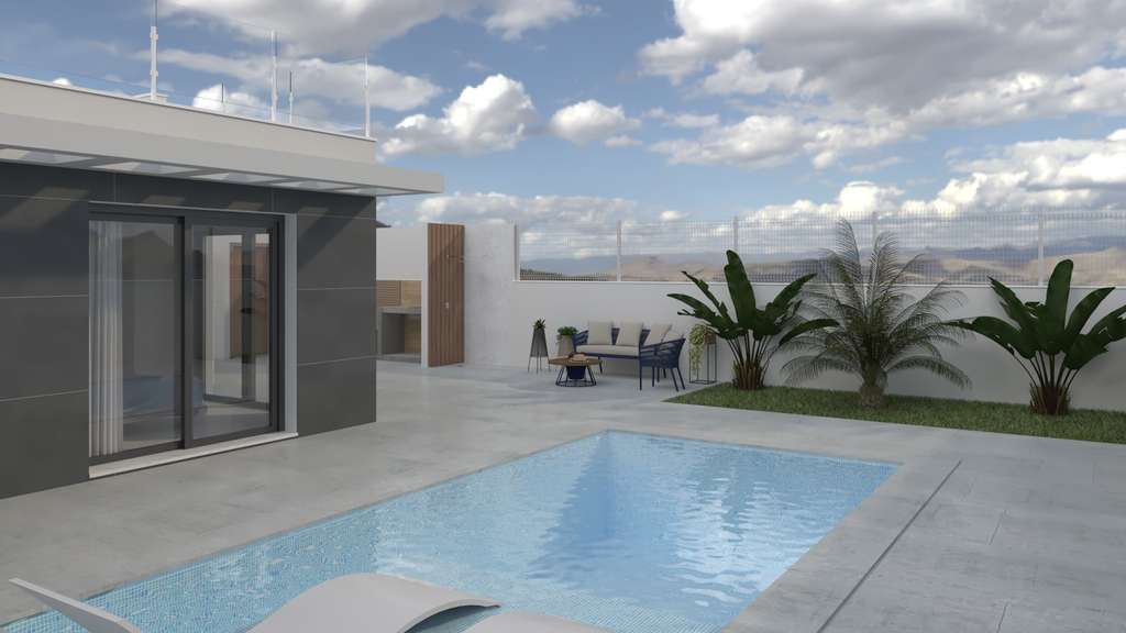Diseño Exterior de Primera: Fachada moderna con doble hoja de ladrillo y aislamiento térmico y acústico, garantizando eficiencia energética y confort en cada estación del año.Interiores de Lujo: Los interiores están cuidadosamente acabados con gres porcelánico de alta calidad tanto en suelos como en los revestimientos de baños y cocina. Los techos cuentan con falso techo continuo de yeso liso, aportando un toque de distinción.Espacios Amplios y Funcionales: La villa dispone de una cocina de diseño moderno completamente amueblada, equipada con una encimera de cuarzo o granito que añade un toque de lujo y resistencia. Los dormitorios cuentan con armarios empotrados a medida, maximizando el espacio de almacenamiento.Confort Todo el Año: La vivienda está equipada con ventanas de alta gama, con rotura de puente térmico y doble acristalamiento, además de persianas motorizadas. Los baños incluyen suelo radiante para un extra de confort en los días más fríos.Exteriores para Disfrutar: La propiedad incluye una cubierta solárium transitable acabada con gres antideslizante, ideal para disfrutar del clima mediterráneo. Además, cuenta con una espectacular piscina privada con estructura de hormigón gunitado e iluminación LED, y una zona de barbacoa perfecta para reuniones al aire libre.Comodidades Adicionales: Preinstalación de aire acondicionado por conductos en toda la vivienda, listo para la instalación del sistema completo. También dispone de una plaza de aparcamiento individual pavimentada con hormigón, garantizando seguridad y comodidad.