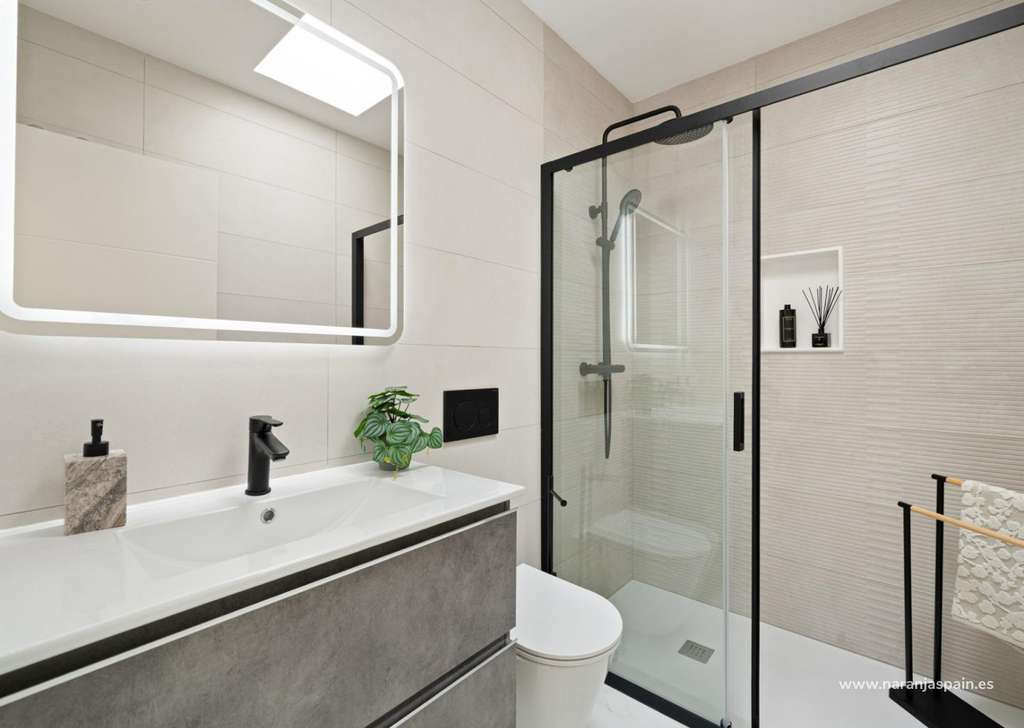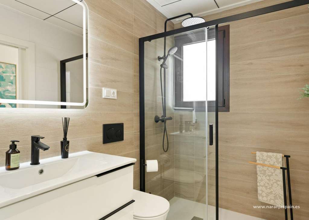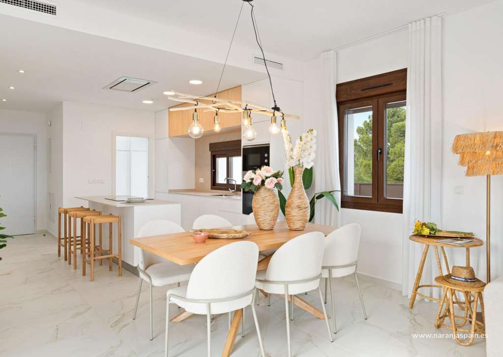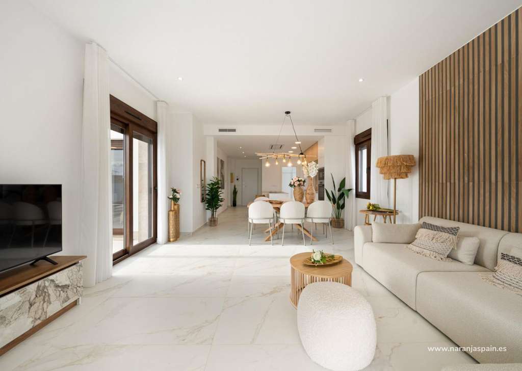 Acabados de alta calidad y eficiencia energéticaEstas villas están construidas con materiales de primera calidad y acabados modernos, que garantizan el confort y la eficiencia energética:Persianas motorizadas en salón, cocina y dormitorios.Suelo radiante en todos los baños.Preinstalación de aire acondicionado por conductos para mayor comodidad durante todo el año.Jardín paisajista de estilo mediterráneo, diseñado para un bajo mantenimiento.Puerta de entrada de seguridad reforzada para mayor tranquilidad.Sistema aerotérmico para el suministro de agua caliente.Tres paneles solares fotovoltaicos, que contribuyen a un certificado de eficiencia energética con calificación A.