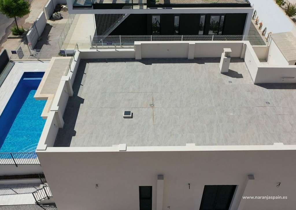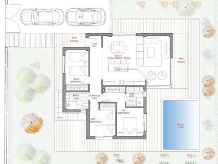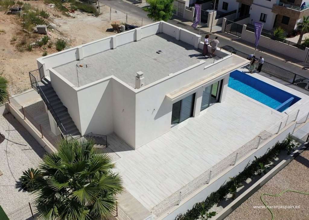 VILLA pensada y diseñada para aprovechar al MÁXIMO los espacios, en una sola planta con parcela mínima de 400 m2, parcela independiente, recinto perimetral cerrado, piscina privada, zona de parking, acceso motorizado, jardín terminado con gravas y plantas ornamentales.
