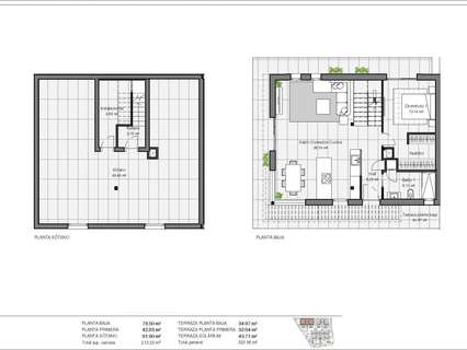 Viviendas modernas con 3 amplios dormitorios con armarios empotrados (el principal en planta baja, con baño y vestidor en suite), 2 amplios baños, gran salón-comedor con cocina abierta, amplias terrazas, gran semisótano con ventanas.