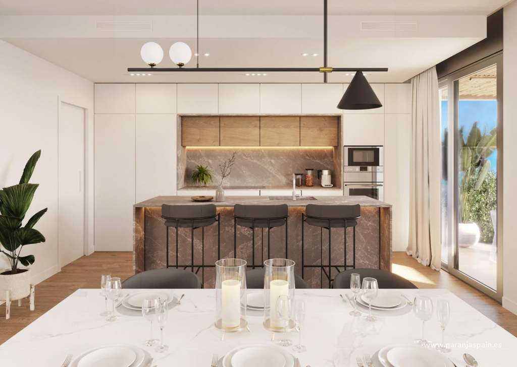 La distribución de estas villas está pensada para proporcionar comodidad en su día a día, con cocinas de concepto abierto totalmente equipadas, que incluyen placa de cocción, placa de inducción, horno, campana extractora y fregadero. Los baños también vienen equipados.