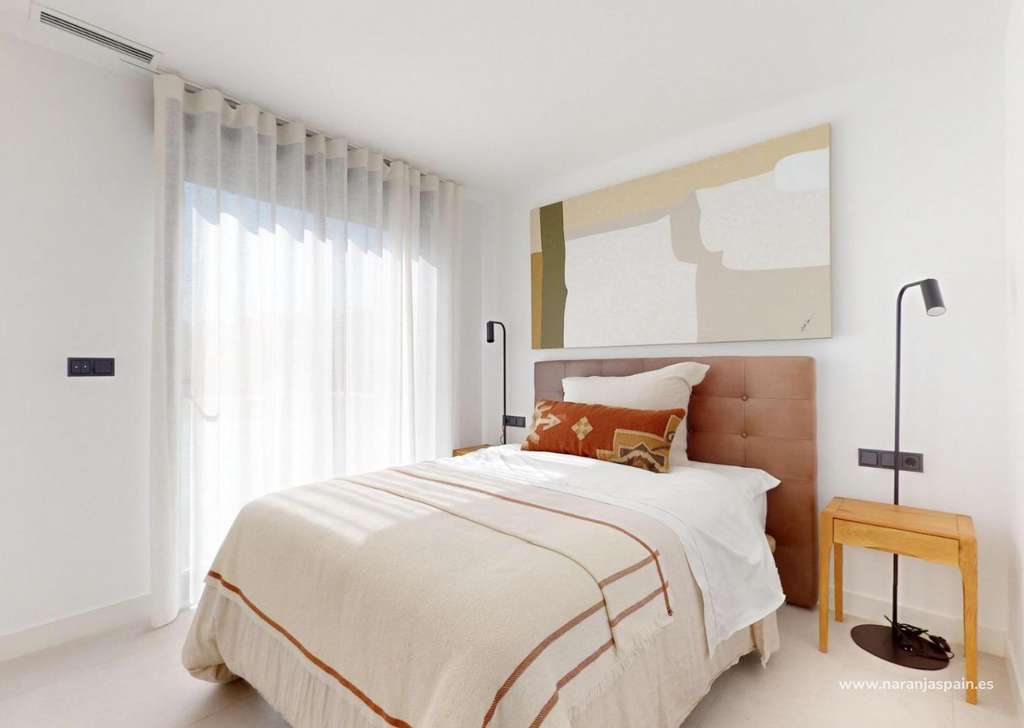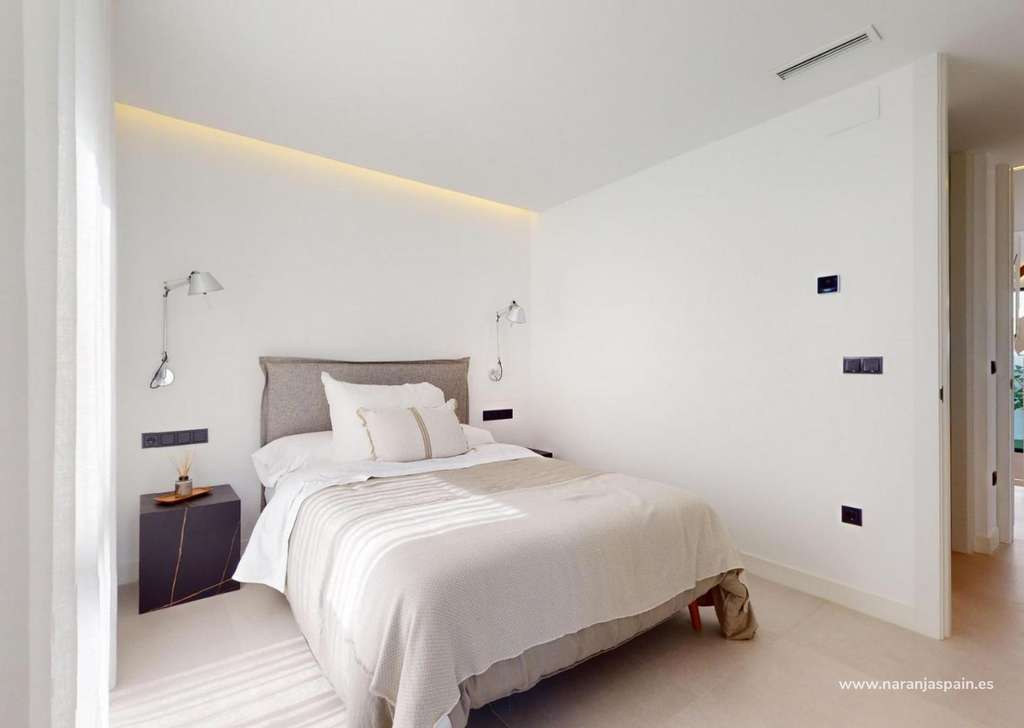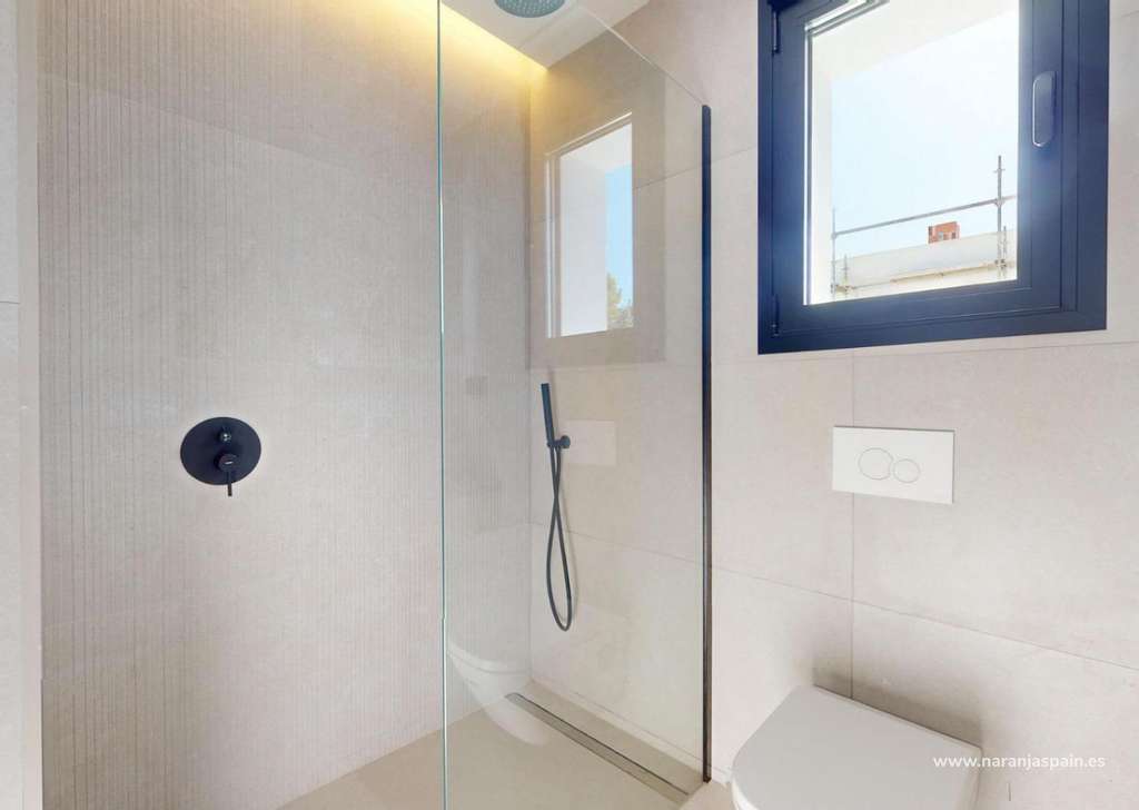 Baños completos: inodoro suspendido, grifería, radiador toallero, lavabo marca Roca. Aire acondicionado, agua caliente y suelo radiante en todas las viviendas por aerotermia Panasonic. Piscina desbordante. Carpintería interior: puertas interiores de 2,80 cm de altura, armarios empotrados. Carpintería exterior: Doble acristalamiento, perfilería de aluminio. Suelos de gres porcelánico.