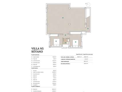 Cada villa está construida en una parcela privada de 432 m², y ofrece la posibilidad de elegir entre distribuciones de una o dos plantas, con la opción de añadir un sótano para disponer de espacio adicional. Todas las viviendas incluyen: