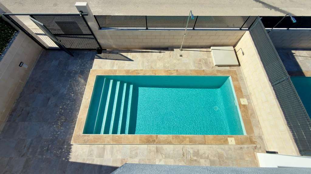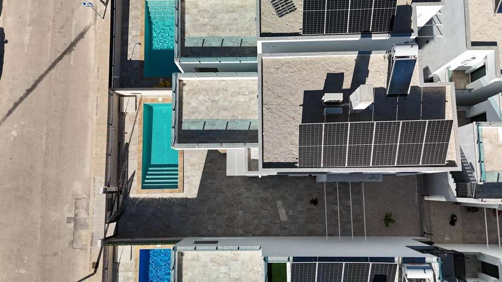 La propiedad se encuentra en una parcela de 205 m² y cuenta con jardín privado, piscina privada , terraza, balcón y solárium. Las zonas exteriores ofrecen excelentes oportunidades tanto para relajarse como para socializar, con vistas a las montañas y al mar. La parcela incluye dos plazas de aparcamiento privadas .