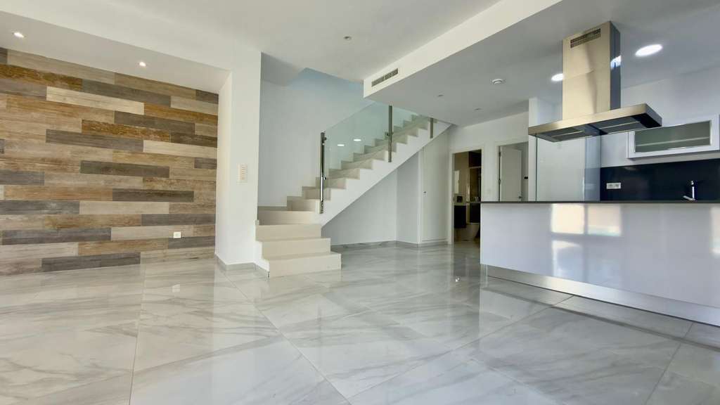La casa se distribuye en dos plantas y tiene una superficie construida de 150 m² , con una superficie útil de 116 m² . La distribución es eficiente y espaciosa, con buena luminosidad en toda la casa. Dispone de tres habitaciones dobles , todas exteriores, y tres baños completos . El salón y la cocina se distribuyen en un espacio abierto que proporciona un espacio social y funcional.