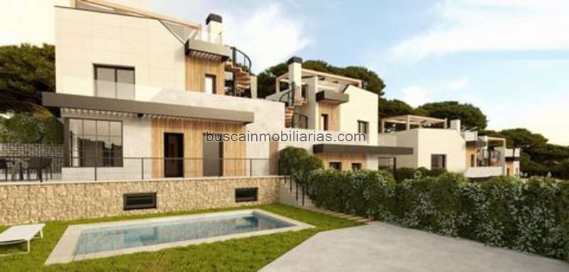 Villas pareadas modernas de obra nueva con varias terrazas y solarium, totalmente vallados, con zona de aparcamiento para vehículos y piscina privada en Polop.