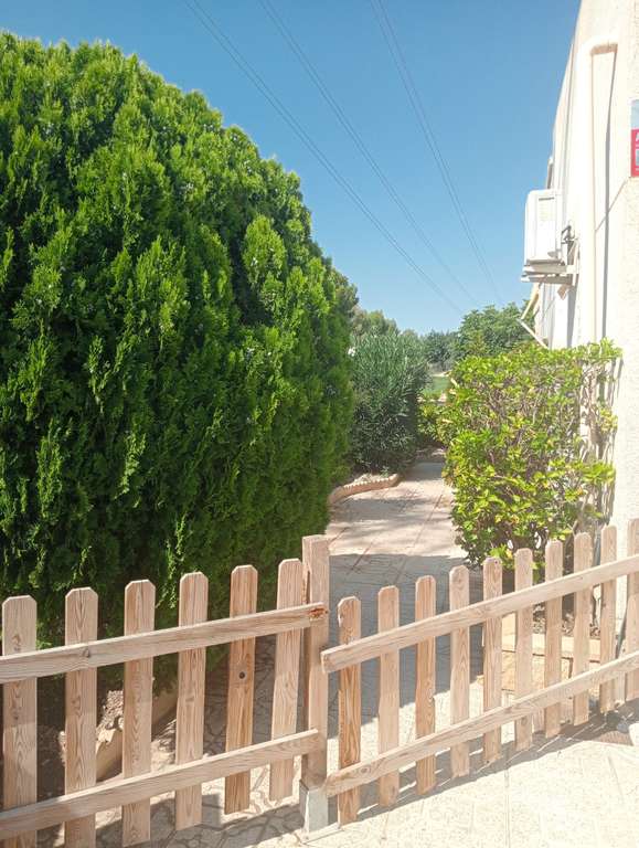 La vivienda, muy luminosa y rodeada de jardín, cuenta con dos amplios dormitorios y dos baños completos, uno de ellos en suite, ideal para disfrutar de la máxima comodidad. Su cocina independiente, totalmente exterior, proporciona un espacio funcional y agradable para el día a día.