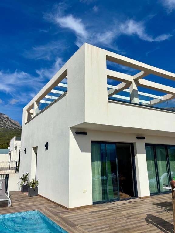 Te presentamos esta elegante villa independiente de diseño moderno, construida en 2023, situada en una tranquila zona residencial de Polop de la Marina. La propiedad destaca por sus excelentes calidades, una distribución funcional, y unas preciosas vistas al mar y la montaña desde diferentes puntos de la vivienda.