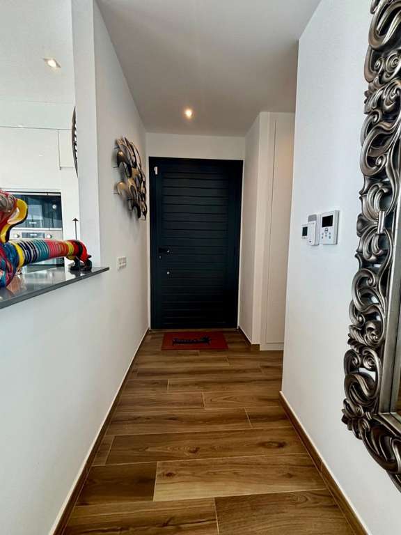 Al acceder a la vivienda nos recibe un elegante recibidor con aseo de cortesía, que da paso a una luminosa zona de día con una moderna cocina americana equipada con electrodomésticos panelados, abierta al salón-comedor, con grandes ventanales correderos que conectan directamente con la amplia terraza exterior.
