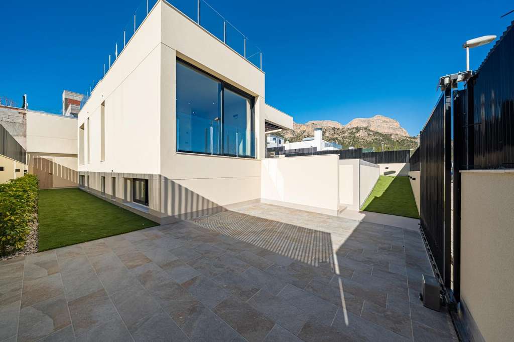 Villa nueva llave en mano con vistas al mar en La Alberca Polop Villa moderna de lujo en un entorno natural de montaña Esta villa contemporánea llave en mano se encuentra en La Alberca, una tranquila zona residencial de Polop, rodeada de bosques y montañas. Situada en un entorno elevado, la propiedad disfruta de vistas panorámicas al mar Mediterráneo, las montañas y el centro histórico de Polop. La villa ofrece privacidad, tranquilidad y excelentes conexiones con la costa y las localidades cercanas. Polop es un encantador pueblo de la comarca de la Marina Baixa, en la Costa Blanca, conocido por su carácter tradicional y su entorno natural. La propiedad está cerca de todos los servicios de La Nucía, incluyendo tiendas, restaurantes, centros deportivos y colegios, mientras que las playas y las animadas localidades costeras se encuentran a poca distancia en coche. Amplia distribución entre la planta principal, el sótano y el solárium La villa se distribuye en una planta principal, un sótano y un solárium en la azotea, lo que ofrece un amplio espacio habitable y flexibilidad. En la planta principal, un acogedor vestíbulo de entrada con armario empotrado conduce a dos dormitorios en suite, incluida una suite principal con puertas ventanas elevables que dan a un balcón Juliette y a una terraza. La sala de estar y el comedor de planta abierta conectan a la perfección con una terraza cubierta con pérgola y una piscina privada de agua salada. El sótano cuenta con dos dormitorios adicionales con baño, grandes ventanas, una sala de juegos o cine flexible con conexiones de agua y electricidad para una zona de bar, un lavadero totalmente equipado con electrodomésticos Haier y dos cuartos técnicos. El solárium de la azotea ofrece un amplio espacio al aire libre con vistas panorámicas al mar y está preparado para la futura instalación de paneles solares. Una cocina al aire libre, múltiples armarios y un jardín de estilo mediterráneo con riego automático completan el exterior. Características de alta gama y eficiencia energética Esta villa destaca por sus acabados de primera calidad y sus instalaciones avanzadas, entre las que se incluyen: Isla de cocina central con electrodomésticos BOSCH integrados Encimeras de piedra natural en interiores y exteriores Preinstalación de calefacción por suelo radiante Sistema de aire acondicionado aerotérmico Mitsubishi Clasificación de eficiencia energética Clase A Preinstalación para sistema domótico Piscina de agua salada con calefacción opcional Aparcamiento privado para dos vehículos Las grandes ventanas con cristales de protección solar maximizan la luz natural y garantizan el confort y la seguridad. Excelente ubicación y distancias Centro de Polop a 2 km La Nucia a 4 km Benidorm a 12 km Altea a 10 km Playas a 10 km Villaitana Golf a 14 km Aeropuerto de Alicante a 65 km Asegúrese la casa de sus sueños en Polop Esta excepcional villa llave en mano combina privacidad, diseño y vistas panorámicas en una de las zonas más atractivas del interior de la Costa Blanca. Póngase en contacto con nosotros hoy mismo para concertar una visita privada y hacer de esta lujosa villa en La Alberca Polop su nuevo hogar. 425