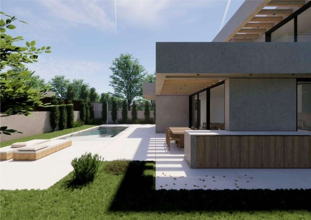 La planta principal le da la bienvenida con un vestíbulo de entrada con armario empotrado y aseo para invitados. Este nivel incluye un dormitorio en suite con puertas ventanas elevables de suelo a techo que dan a una terraza lateral privada. La luminosa sala de estar y comedor de planta abierta conecta directamente con una terraza cubierta con pérgola y la piscina privada de agua salada, creando un armonioso estilo de vida interior y exterior.