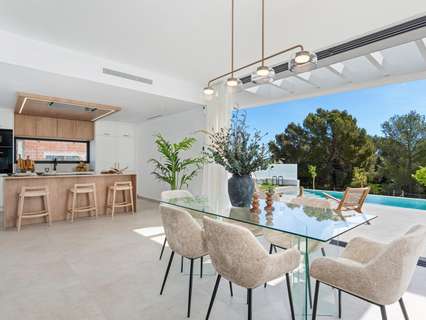 Villas modernas construidas en 3 plantas, dispone de 3 dormitorios, 3 baños, aseo de invitados, cocina moderna americana con amplio salón comedor tiene acceso directo a la terraza con la piscina, armarios empotrados, sótano con garaje y trastero, aire acondicionado, electrodomésticos.