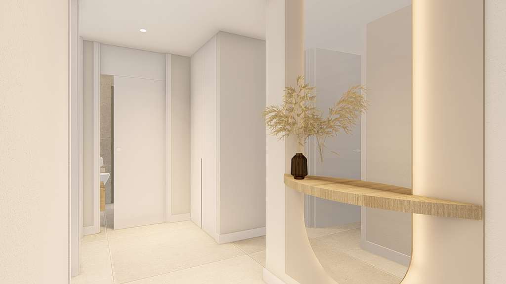 El interior de las viviendas está diseñado con un enfoque en la funcionalidad y el confort. Los suelos de gres porcelánico aportan un toque de elegancia y son fáciles de mantener. Las viviendas están equipadas con aire acondicionado, garantizando un ambiente agradable durante todo el año. Las persianas eléctricas y el videoportero añaden un nivel extra de comodidad y seguridad. La cocina, equipada con electrodomésticos modernos, se integra perfectamente en el espacio, facilitando la vida diaria. Los armarios empotrados en los dormitorios ofrecen un almacenamiento eficiente y ordenado.
