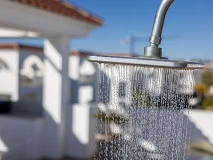 Un acogedor conjunto de salón, tumbonas, una cocina exterior completa con barbacoa, frigorífico y fregadero, así como una ducha exterior con agua fría y caliente.