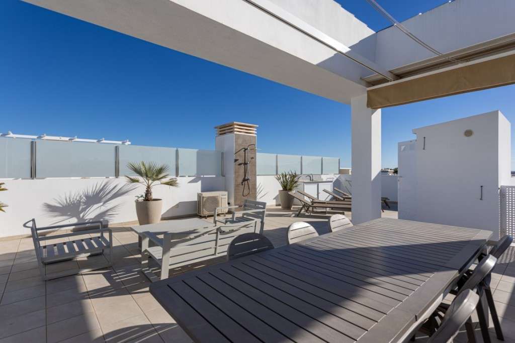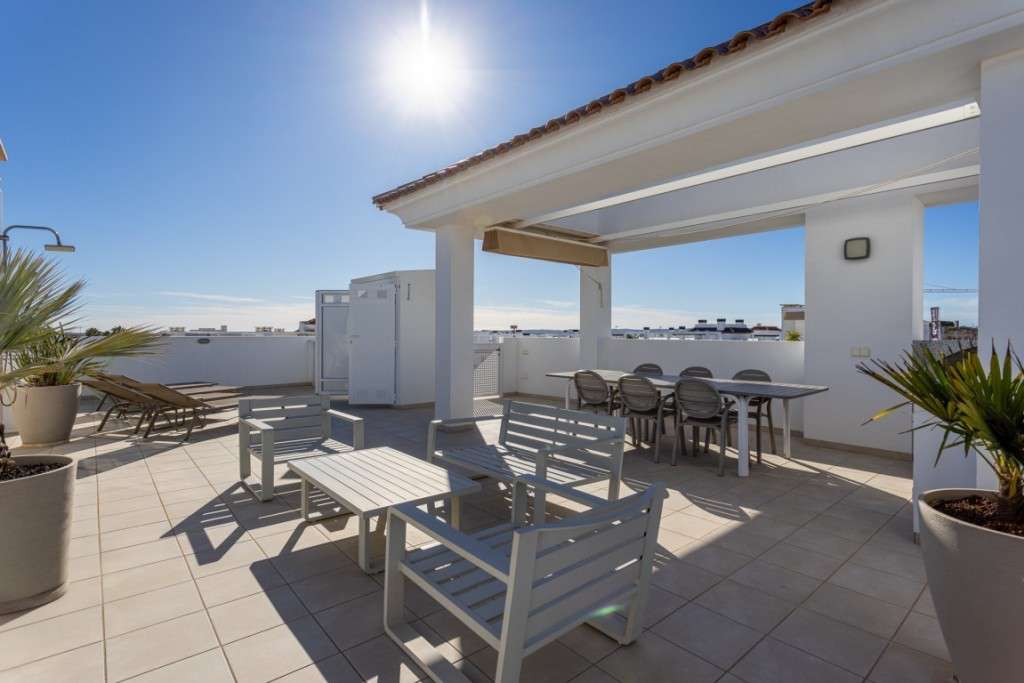 Ático de lujo en venta en Ciudad Quesada, Costa Blanca SurDescubra este impresionante ático moderno en venta en Ciudad Quesada , una de las zonas más codiciadas de la Costa Blanca Sur . Esta propiedad, totalmente amueblada y equipada, ofrece comodidad, estilo y vistas impresionantes: la opción perfecta para una casa de vacaciones, inversión o residencia permanente en España.Descripción general de la propiedadTipo: Apartamento PenthouseUbicación: Ciudad Quesada, Rojales – Costa Blanca Sur, AlicanteDormitorios: 2 amplios, completamente amueblados.Baños: 2 modernos y bien equipados.Cocina: Totalmente equipada con electrodomésticos de primera calidad.Área de estar: Sala de estar amplia y luminosa con decoración moderna.Terrazas: 2 terrazas privadas, incluyendo un comedor.Solarium en la azotea: terraza privada de 78 m² con vistas panorámicas a la laguna y al jardínCaracterísticas exclusivas en la azoteaEste excepcional ático con terraza privada en la azotea ofrece todo lo necesario para vivir al aire libre en España:Gran mesa de comedor con seis sillas y sombrilla retráctil.Elegante conjunto de salón y tumbonasCocina exterior completa con barbacoa, frigorífico y fregadero.Ducha exterior con agua fría y caliente.Comunidad y serviciosUbicada en un complejo residencial bellamente mantenido, la propiedad incluye:Tres grandes piscinas comunitariasJardines paisajísticos con palmeras y zonas verdes.Zona de juegos y fitnessPistas de tenis gratuitasPlaza de aparcamiento privada en zona segura con tres portones eléctricos.Ubicación privilegiada en la Costa BlancaEste ático en Ciudad Quesada tiene una ubicación ideal cerca de todos los servicios (supermercados, restaurantes, campos de golf y centros médicos) y a un corto trayecto en coche de la costa:Torrevieja: 5 minutosGuardamar del Segura: 10 minutos – famosa por sus playas de arena doradaCampo de Golf La Marquesa: cercanoExcelente conectividadAeropuerto de Alicante-Elche: 30 minutosAeropuerto de Murcia-Corvera: 1 hora¿Por qué elegir esta propiedad&8364;Este ático de lujo en venta en la Costa Blanca combina diseño moderno, confort y una ubicación inmejorable. Tanto si busca un apartamento vacacional en España , una inversión para alquilar o una casa soleada , esta propiedad ofrece una relación calidad-precio excepcional y un estilo de vida excepcional.