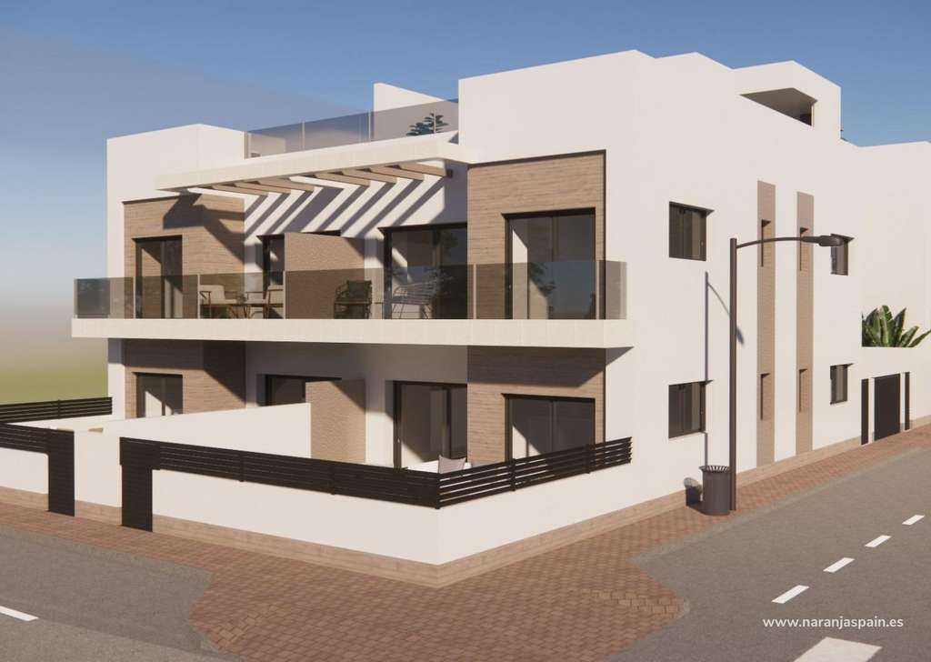 La promoción ofrece apartamentos contemporáneos de 2 dormitorios y 2 baños, incluyendo un dormitorio principal con baño en suite. Los compradores pueden elegir entre propiedades en planta baja con amplias terrazas privadas, perfectas para disfrutar del aire libre, o viviendas en la última planta con terraza y solárium privado, ideales para tomar el sol y relajarse. A algunos de los apartamentos de la última planta se puede acceder en ascensor, lo que añade comodidad y accesibilidad.