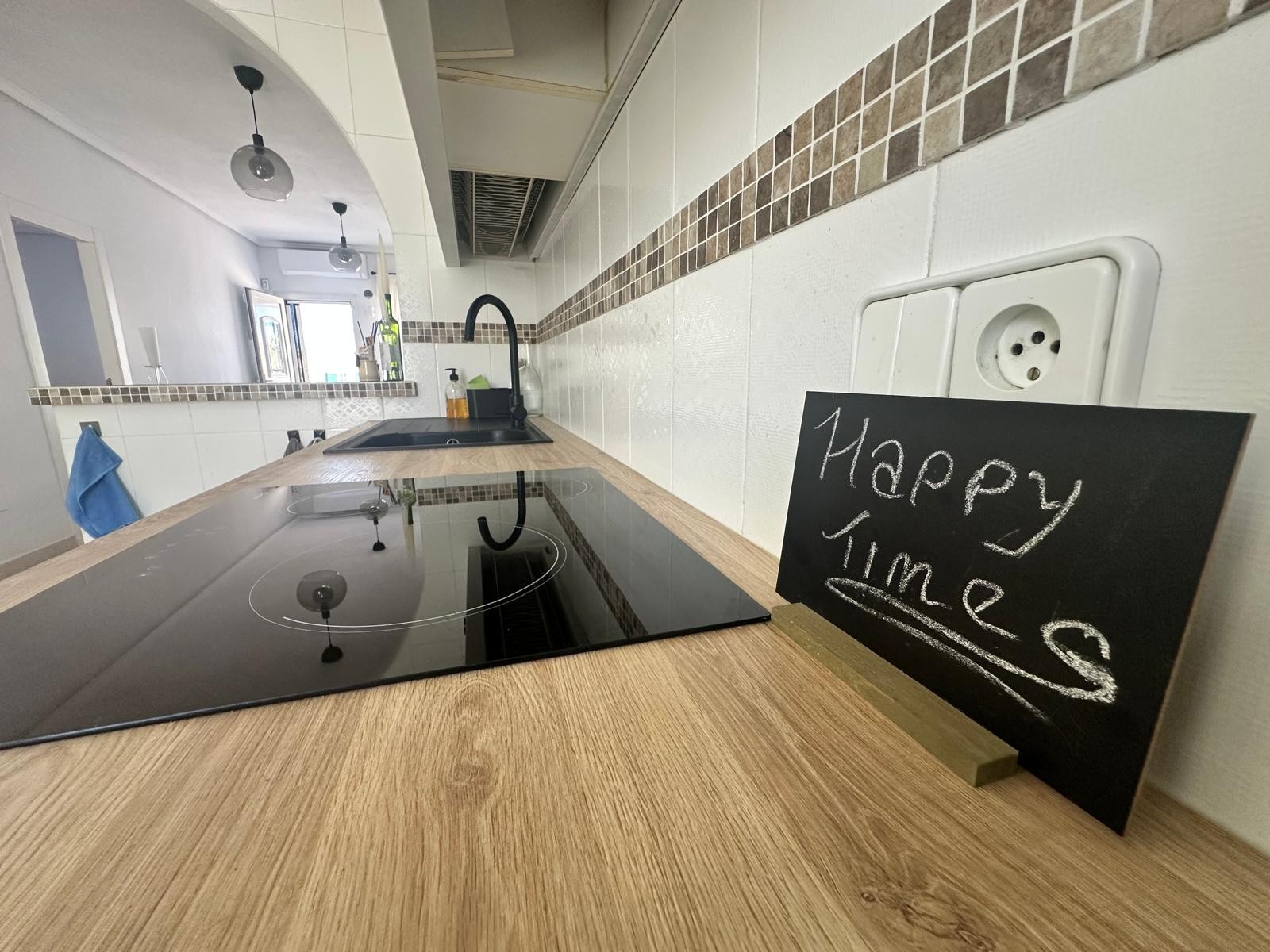 Desde la terraza accedemos a un salón cómodo y luminoso, con zona de comedor que conduce a una cocina moderna de buen tamaño, totalmente equipada y de concepto abierto. La cocina cuenta con una puerta trasera que da acceso a la terraza posterior y zona de estar, un lugar ideal para tomar el café por la mañana al sol o aprovechar la agradable sombra durante las horas más calurosas del verano.