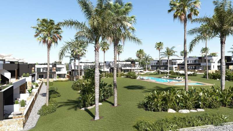 Bungalows: Unidades de planta baja con jardín privado u opciones de planta alta con solárium. Todos los bungalows incluyen dos dormitorios, dos baños, una plaza de aparcamiento y un trastero, alrededor de una zona comunitaria central con piscina y jardines paisajísticos.