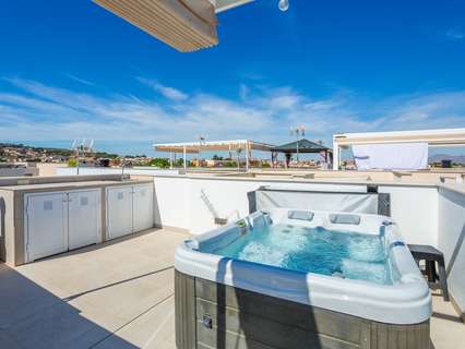 Solarium:Por las escaleras exteriores de la primera planta se accede al solarium. Se trata de un espacio exterior ideal para relajarse y disfrutar del jacuzzi. El solarium está equipado con cómodas zonas para sentarse y una cocina exterior con conexión de agua y electricidad.