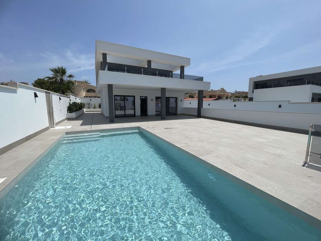 Descubra el privilegio de vivir en una villa de diseño contemporáneo, donde cada detalle ha sido pensado para ofrecer el máximo confort y calidad de vida en una de las zonas más cotizadas de la Costa Blanca.Esta exclusiva villa independiente destaca por su elegante arquitectura y su óptima distribución en una parcela de 550 m². Con una superficie construida de 181 m² y un amplio garaje de 130 m², la vivienda ofrece espacios generosos y funcionales, ideales para quienes buscan privacidad y bienestar en un entorno tranquilo, pero perfectamente comunicado.EXTERIORESJardín privado con riego automático: Disfrute de un entorno verde y cuidado sin esfuerzo, realzado por una iluminación interior y exterior que crea ambientes acogedores tanto de día como de noche. Piscina de 8×4 m con agua caliente: Un auténtico oasis para disfrutar durante todo el año, perfecta para relajarse o compartir momentos en familia y con amigos. Amplias terrazas: Espacios exteriores diseñados para el descanso, el ocio y el disfrute del clima mediterráneo.INTERIORESSalón luminoso y cocina amueblada: Ambientes abiertos que maximizan la entrada de luz natural, con una cocina totalmente equipada con electrodomésticos de alta gama. Tres dormitorios y cuatro baños: Habitaciones espaciosas que garantizan privacidad y comodidad, acompañadas de baños modernos y funcionales. Lavadero y sótano-garaje de gran capacidad: Espacios auxiliares que facilitan la organización y el almacenamiento, adaptándose a todas las necesidades del hogar. Confort avanzado: Suelo radiante y aire acondicionado por aerotermia en toda la vivienda, asegurando una temperatura perfecta en cualquier estación del año.