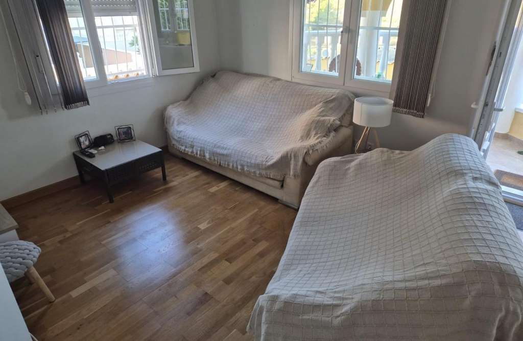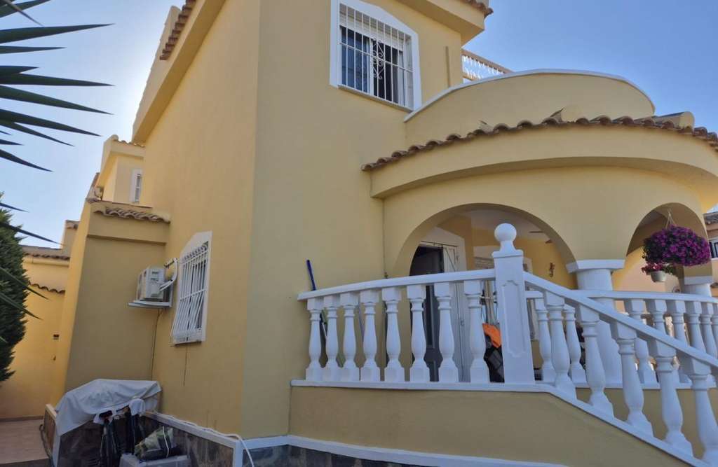 Preciosa villa independiente ubicada en una ubicación y comunidad muy solicitadas.~Amplia ubicación en esquina con vistas a los lagos, Lo Pepín y las zonas despejadas circundantes.~3 dormitorios dobles, cada uno con amplio espacio de almacenamiento.~2 baños.. .~Terraza en la primera planta para relajarse y disfrutar de las puestas de sol españolas.~La villa está rodeada por una terraza de baldosas de fácil mantenimiento que rodea toda la propiedad, lo que la convierte en una vivienda vacacional ideal.~Comunidad multinacional de solo 43 villas.~Fácil acceso a la AP7 y a 35-40 minutos del aeropuerto de Alicante.. .~Fantásticas piscinas comunitarias para refrescarse del sol español.~Lista para entrar a vivir.