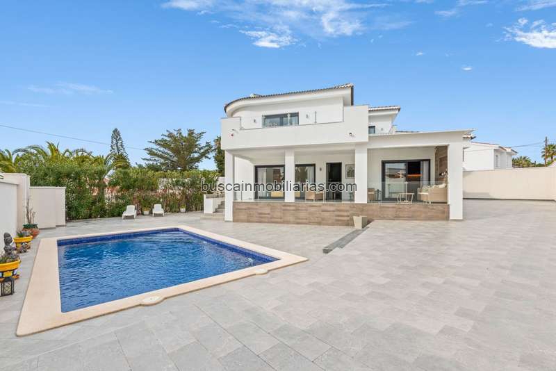 El jardín alberga una piscina privada, donde podrás disfrutar del cálido clima mediterráneo en total privacidad. La zona exterior está perfectamente acondicionada con una terraza diseñada para relajarte y desconectar en esta zona chillout o para comer al aire libre y una zona ajardinada, ideal para aquellos que buscan disfrutar del aire libre sin salir de casa. Las vistas panorámicas que ofrece la propiedad hacia la costa y el entorno natural son simplemente espectaculares.