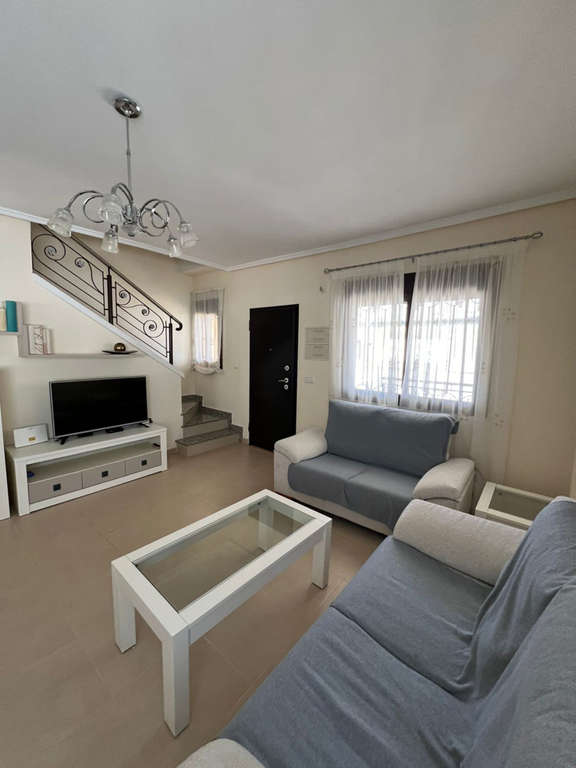 Se vende casa adosada con tres dormitorios en Ciudad Quesada. Casa unifamiliar de dos plantas, tipo dúplex. La casa cuenta con tres dormitorios, dos baños, sala de estar, cocina independiente.Planta baja: sala de estar, cocina independiente, dormitorio, baño con ducha.Planta alta: dos dormitorios con baño.Superficie construida: 105.42 m2Superficie de construcción en la planta baja es de 61 m2, superficie total de construcción - 105,42 m2, también cuenta con un jardín de 120 m2.Garaje independiente para un coche con puerta de cierre.En el complejo residencial hay una piscina comunitaria.Posibilidad de reserva online, así como de compra a plazos con el promotor y financiación bancaria al 3-6% de interés anual.