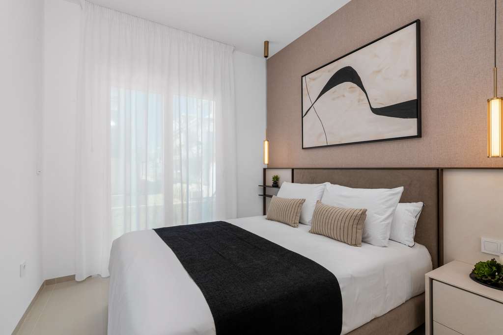 Ubicado en la encantadora Ciudad Quesada, este conjunto residencial ofrece una variedad de opciones de vivienda que se adaptan a diferentes necesidades. Con un total de 33 propiedades, los futuros residentes pueden elegir entre bungalows y áticos, cada uno diseñado para proporcionar comodidad y estilo. La ubicación es ideal para aquellos que buscan un entorno tranquilo sin alejarse demasiado de las comodidades urbanas, ya que se encuentra a solo 39 km del aeropuerto, facilitando los desplazamientos y viajes. Esta cercanía a un importante punto de conexión es una ventaja significativa para quienes valoran la accesibilidad y la conveniencia en su vida diaria.Los exteriores de las propiedades en este residencial están diseñados para maximizar el disfrute del clima mediterráneo. Cada vivienda cuenta con un jardín privado, perfecto para disfrutar de momentos al aire libre en un entorno íntimo. Además, las terrazas amplias ofrecen un espacio adicional para relajarse o entretener a los invitados. La presencia de un solárium en las propiedades proporciona un lugar ideal para tomar el sol y disfrutar de las vistas. La inclusión de pérgolas añade un toque estético y funcional, proporcionando sombra y un espacio acogedor para disfrutar del exterior en cualquier momento del día.El interior de las viviendas está cuidadosamente diseñado para ofrecer confort y funcionalidad. Las opciones de distribución incluyen propiedades de 2 y 3 dormitorios, todas con 2 baños, lo que garantiza espacio suficiente para familias o parejas que deseen un hogar espacioso. Los suelos de gres porcelánico aportan un toque moderno y son fáciles de mantener. Las persianas eléctricas y los armarios empotrados son características estándar que añaden comodidad y practicidad al día a día. Además, la preinstalación de aire acondicionado asegura que las viviendas estén preparadas para mantener una temperatura agradable durante todo el año. La inclusión de un garaje es un valor añadido, proporcionando seguridad y comodidad para el estacionamiento.El residencial cuenta con extensas zonas ajardinadas que ofrecen un entorno verde y relajante para todos los residentes. La piscina comunitaria es un punto focal para el ocio y la socialización, proporcionando un lugar perfecto para refrescarse durante los meses más cálidos. Además, el aparcamiento comunitario asegura que todos los residentes tengan acceso a un espacio seguro para sus vehículos, eliminando preocupaciones sobre el estacionamiento en la zona. Estas características comunes están diseñadas para mejorar la calidad de vida de los residentes, fomentando un sentido de comunidad y bienestar.