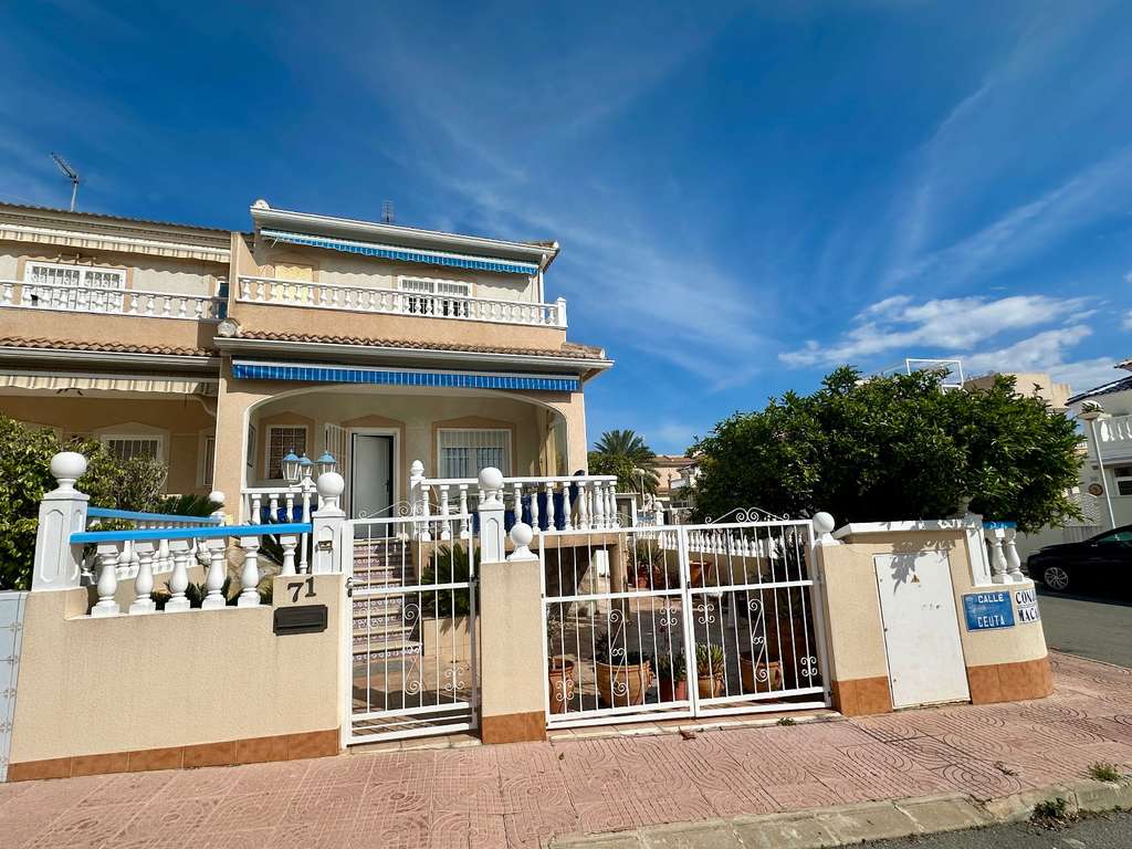 NUEVO en cartera: Casa adosada de esquina con 2 dormitorios y 2 baños , ubicada en la cotizada zona de Doña Pepa de Ciudad Quesada . El dormitorio principal cuenta con un amplio balcón contiguo con impresionantes vistas . En la planta superior, el baño ha sido renovado con gusto . Para un confort óptimo , el dormitorio principal está equipado con aire acondicionado y calefacción por paneles halógenos . En el exterior, disfrutará de un amplio y soleado jardín y una terraza con vistas despejadas . El jardín está adornado con mandarinos y limoneros . También dispone de un práctico lavadero/despensa de aproximadamente 4 x 3 metros . Una zona independiente, de construcción sólida, es ideal para un jacuzzi , que puede abrirse o cerrarse según sea necesario. Este complejo residencial ofrece una gran piscina comunitaria y hermosos jardines paisajísticos . Además, se encuentra cerca de tiendas, bares y restaurantes . Ubicación Doña Pepa (Ciudad Quesada) es una popular zona residencial del sur de la Costa Blanca. La playa (incluyendo Guardamar del Segura) está a unos 10-15 minutos en coche . El Aeropuerto de Alicante (ALC) está a unos 35-40 minutos . Hay varios campos de golf cerca, como el de La Marquesa (Ciudad Quesada), y otros campos en Orihuela Costa/Villamartín, a unos 10-25 minutos en coche .