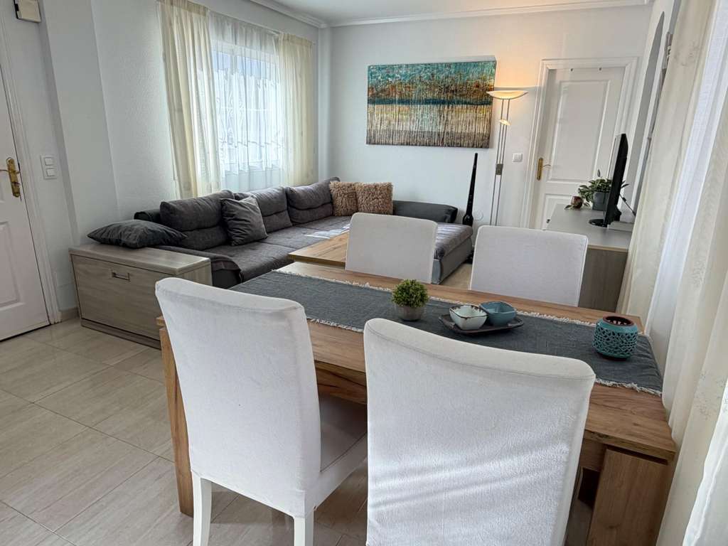 Encantadora casa adosada completamente renovada en Ciudad Quesada Bonita vivienda adosada en Ciudad Quesada, completamente reformada con mucho cuidado y atención a los detalles. La propiedad fue renovada por los propietarios para ellos mismos, lo que se refleja en la calidad y el confort de toda la vivienda. La casa se vende totalmente amueblada y está lista para entrar a vivir. Gracias a su orientación suroeste, disfruta de mucha luz natural durante todo el día. Características principales: •2 dormitorios •2 baños •Amplio salón con cocina abierta •Varias zonas de almacenamiento / trasteros •Plaza de aparcamiento •Piscina comunitaria en la urbanización •Solárium privado con bonitas vistas a las montañas y a la famosa laguna rosa Ubicada cerca de restaurantes, tiendas y todos los servicios, y a pocos minutos en coche de las playas de la Costa Blanca. Una vivienda ideal tanto para vivir como para disfrutar de vacaciones.