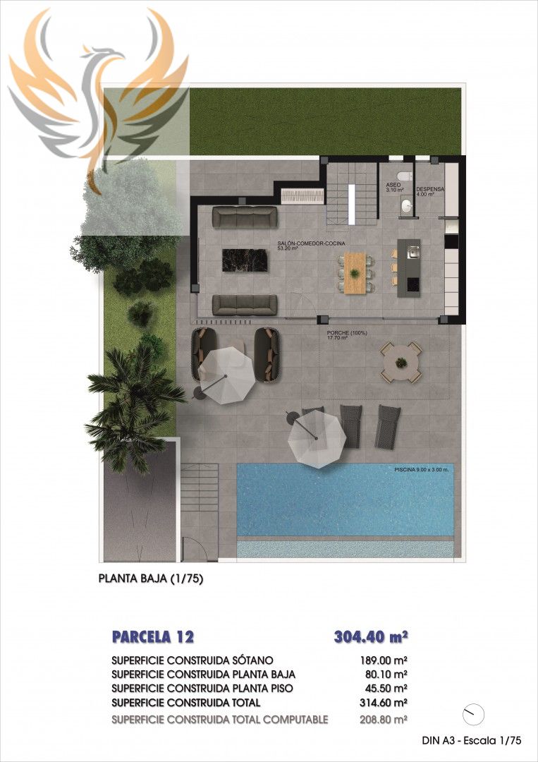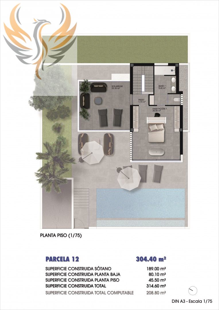 Villa 12. Con 4 Dormitorios, 3 Baños Completos y 1 Aseo. Parcela de 304,40 m2. Superficie Construida de 314,60 m2. Superficie Util de 208,80 m2. Precio 595.000 €