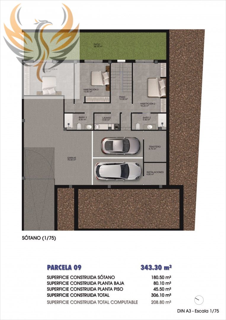 Villa 09. Con 4 Dormitorios, 3 Baños Completos y 1 Aseo. Parcela de 343,30 m2. Superficie Construida de 306,10 m2. Superficie Util de 208,80 m2. Precio 670.000 €