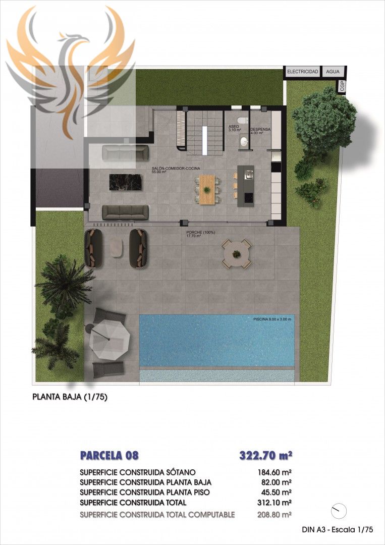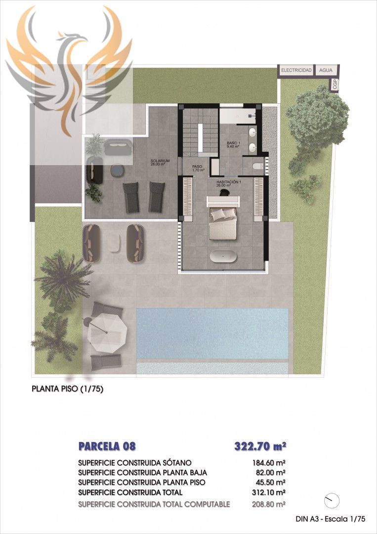 Villa 08. Con 4 Dormitorios, 3 Baños Completos y 1 Aseo. Parcela de 322,70 m2. Superficie Construida de 312,10 m2. Superficie Util de 208,80 m2. Precio 660.000 €