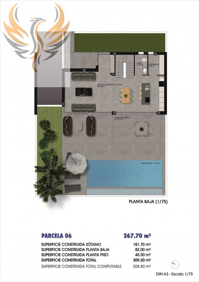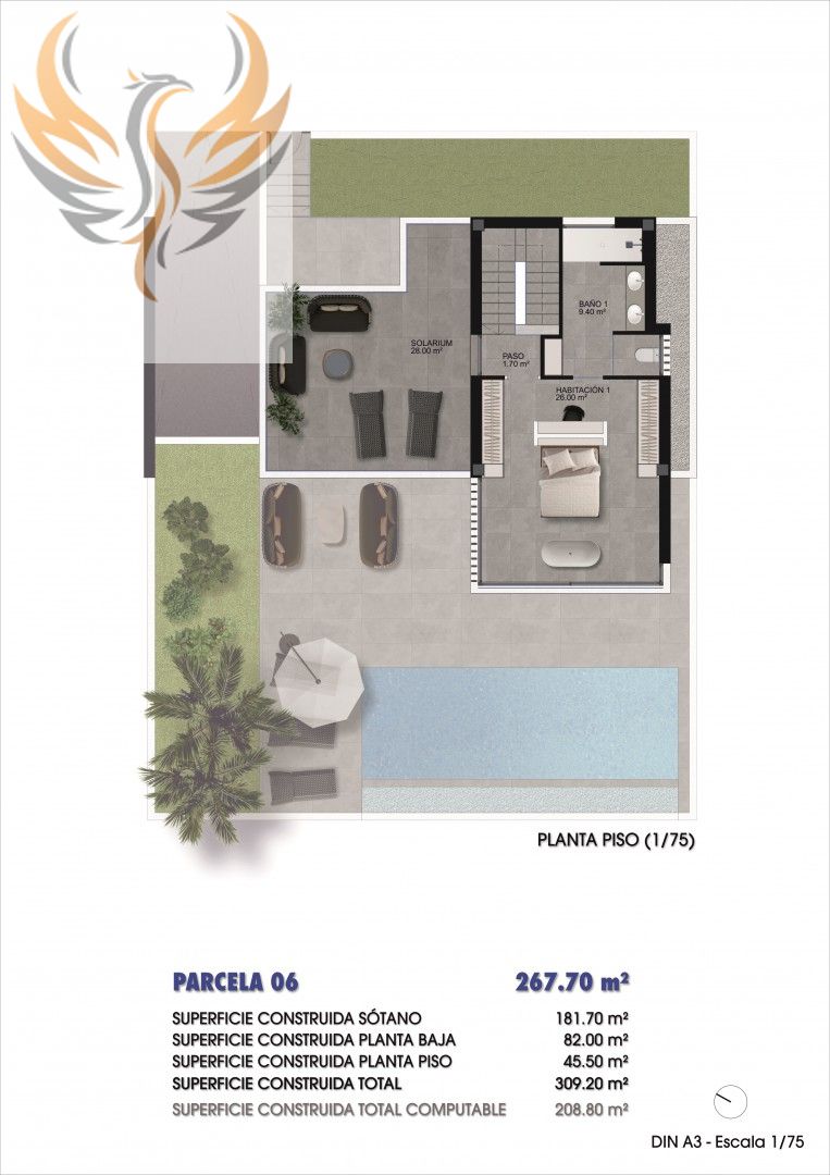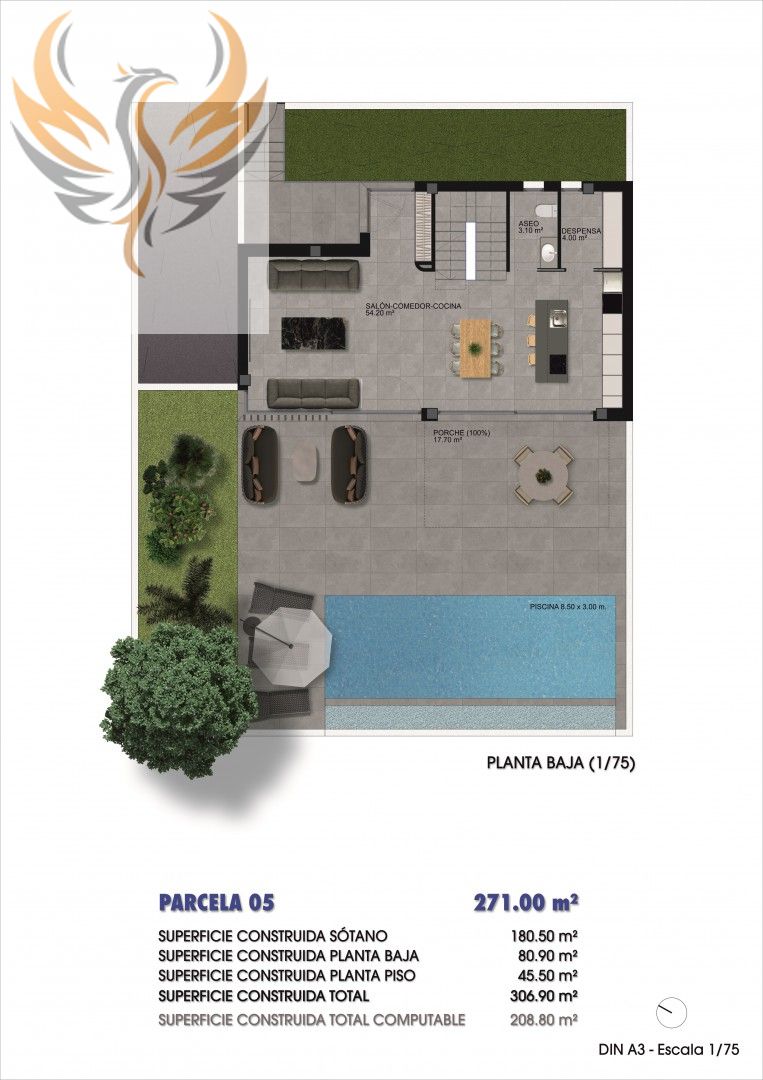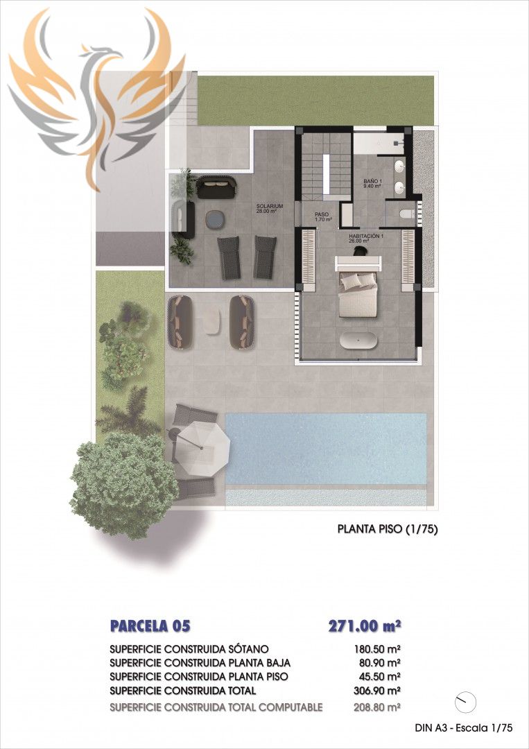 Villa 05. Con 4 Dormitorios, 3 Baños Completos y 1 Aseo. Parcela de 271,00 m2. Superficie Construida de 306,90 m2. Superficie Util de 208,80 m2. Precio 560.000 €